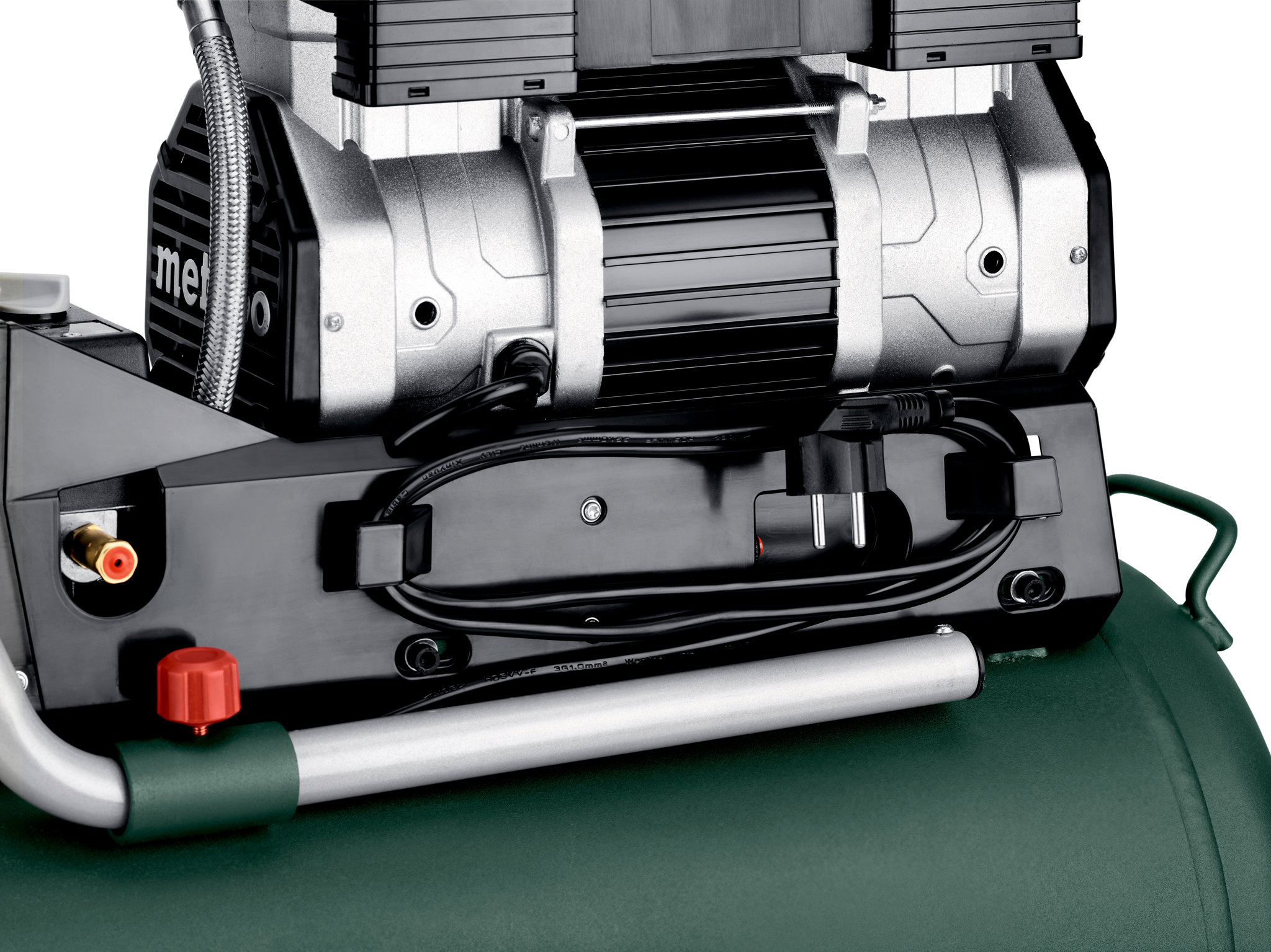 • Clever durchdacht: Halterungen für Druckluftschlauch, zwei Werkzeuge, Zubehör-Steckplätze und Kabelaufwicklung