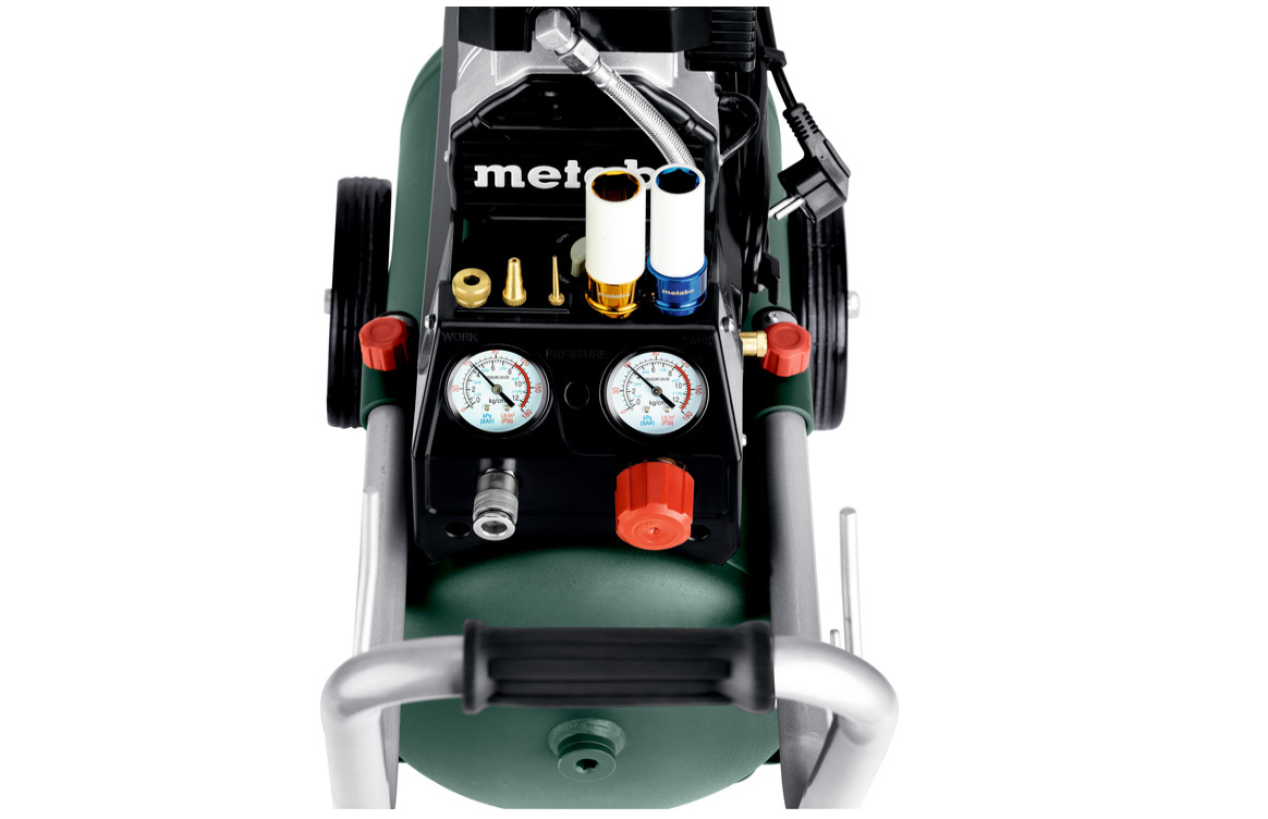 • Das Ölfreie Zwei-Zylinder-Aggregat ist wartungsarm, sauber und leicht zu transportieren