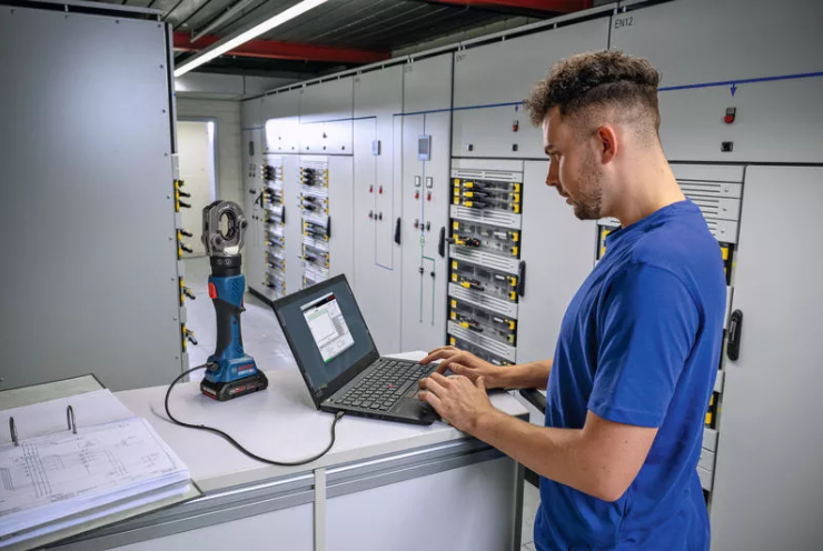 Die GPH 18V-60 eignet sich zum Verpressen von Kabelschuhen auf Kupfer- und Aluminiumkabel bis 300 mm². Die USB-Verbindung und die Auslesesoftware bieten einen Überblick über die Press-Historie, Fehlermeldungen und den Wartungsbedarf des Werkzeugs.